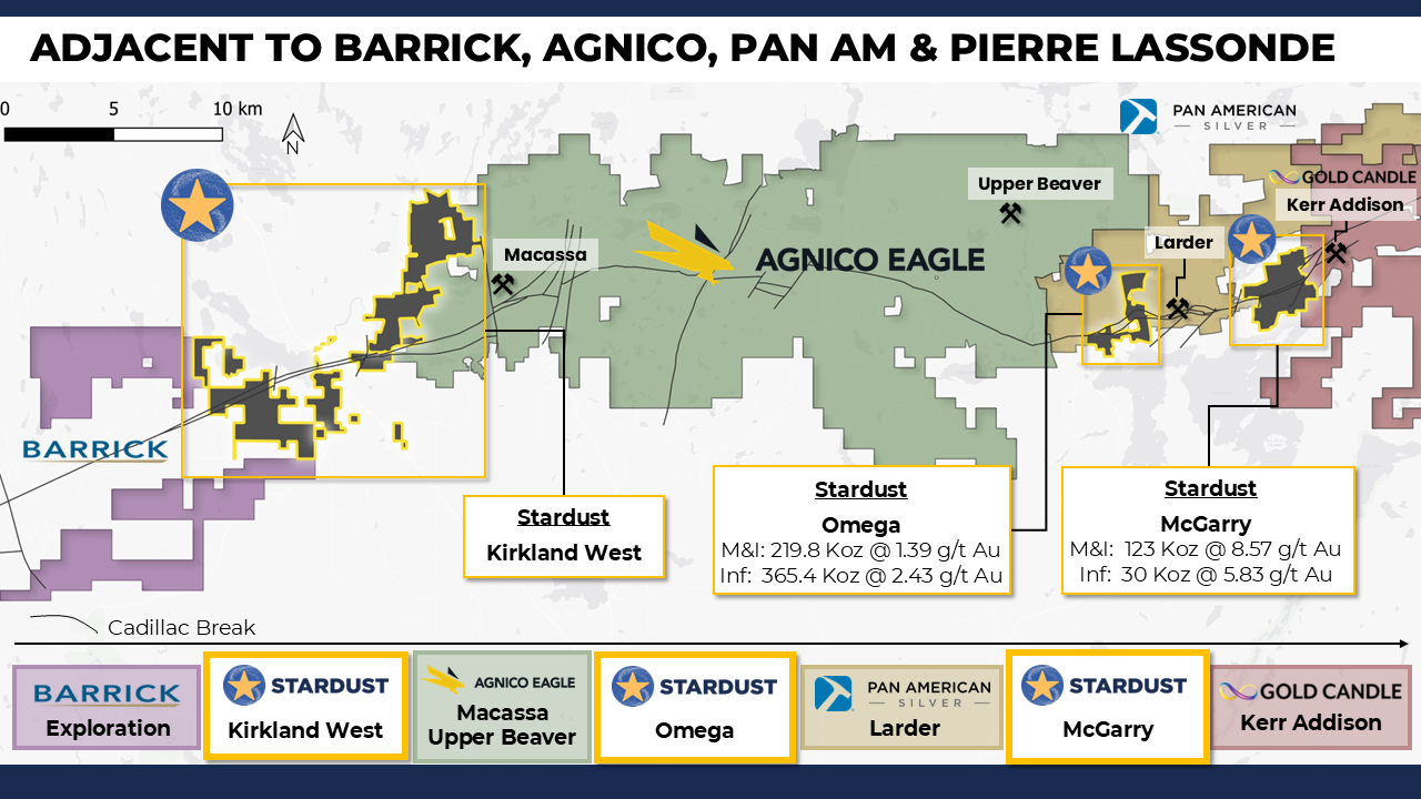 Stardust is an exploration company focused on gold and copper in Ontario and Quebec. Stardust owns a range of assets in the Kirkland Lake district and the emerging Shebandowan gold district in Ontario. Stardust also owns copper assets located in Chibougamau, Quebec, and a portfolio of strategic investments, one of which is Metal Energy's (MERG: TSXV) Manibridge Nickel Mine, a historical production site previously operated by Falconbridge.